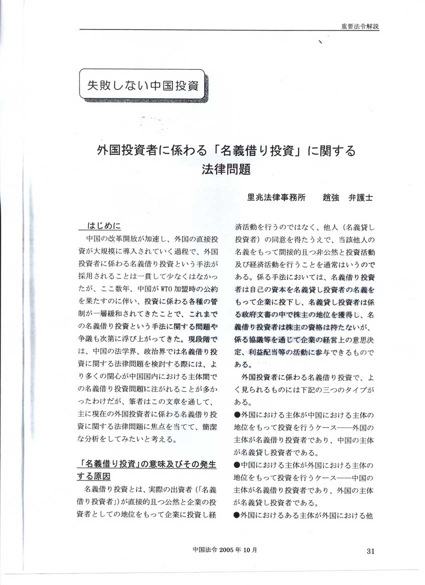 外国投資者に係わる『名義借り投資』に関する法律問題