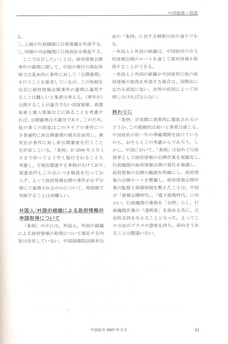 Brief Analysis of the Chinese "Open Government Information Regulations"